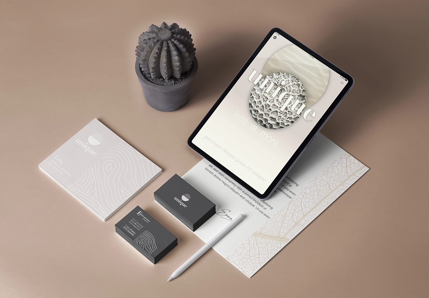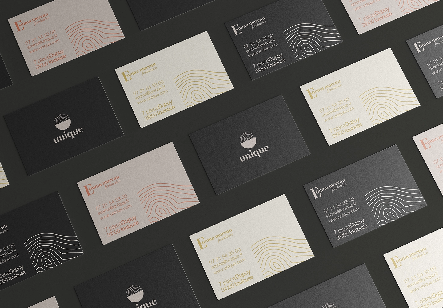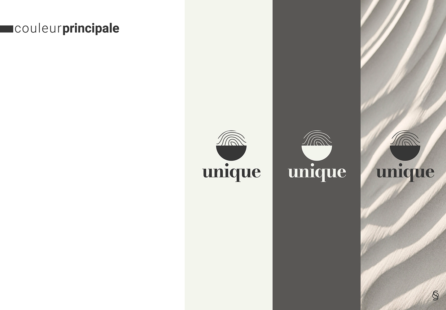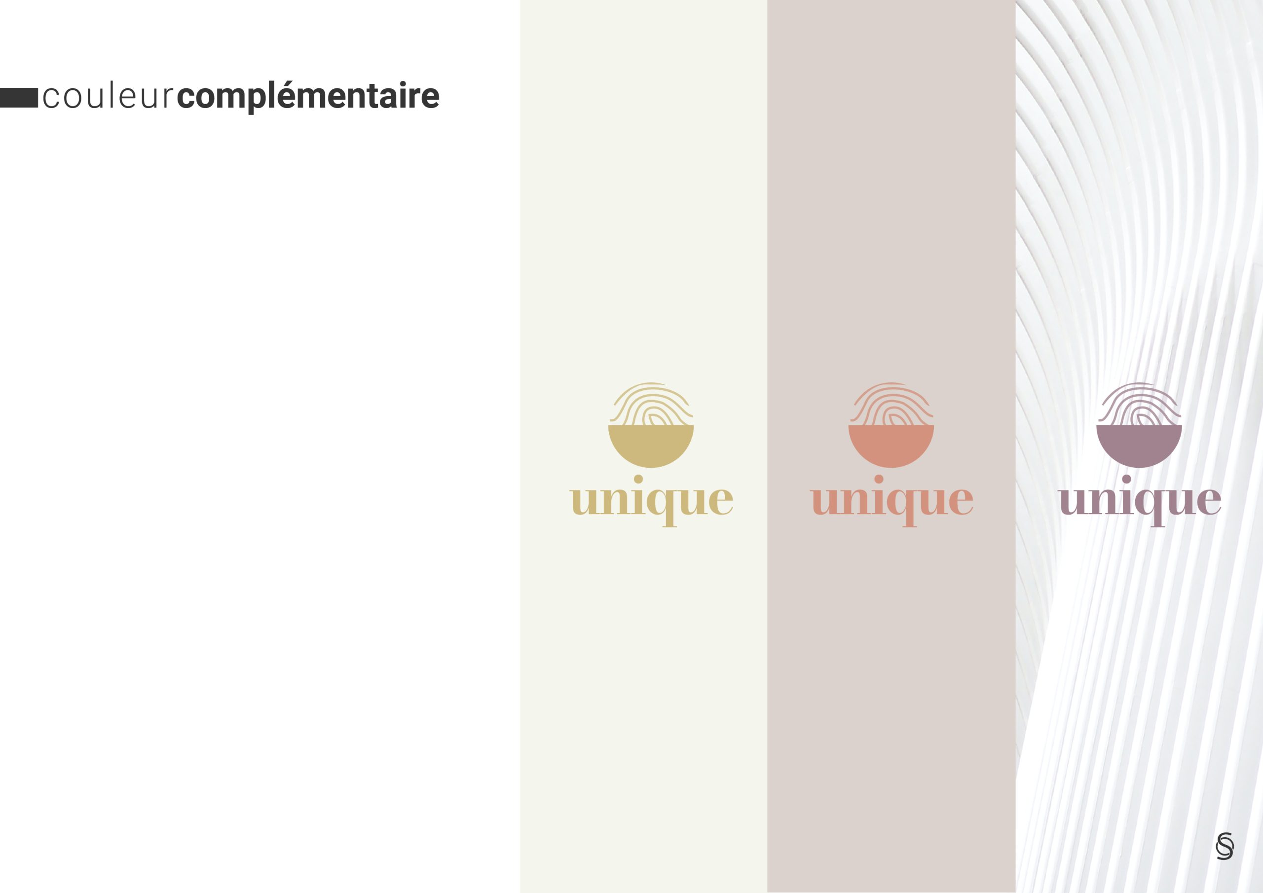 Le design épuré du logo, basé sur des lignes douces et des courbes modernes, reflète l’accessibilité de la marque. La lettre « U » de « Unique », stylisée pour rappeler une empreinte de main, renforce l’idée d’un cosmétique naturel, respectueux des individus et de la planète. Cette approche visuelle, à la fois simple et pleine de sens, permet à Unique de se distinguer et d’établir un lien fort avec ses utilisateurs.